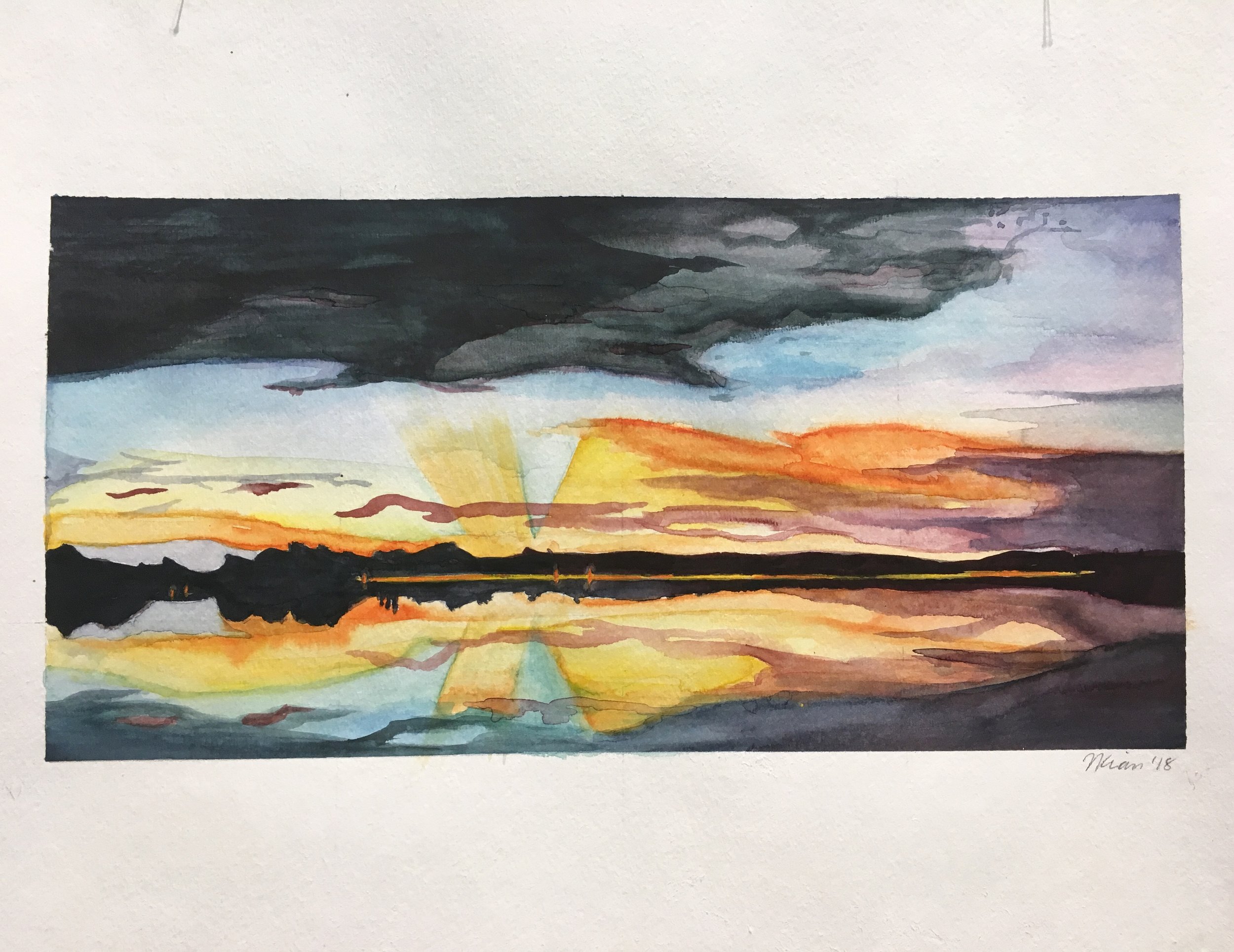 Every Sunrise is a New Beginning, watercolor on paper, 2018.