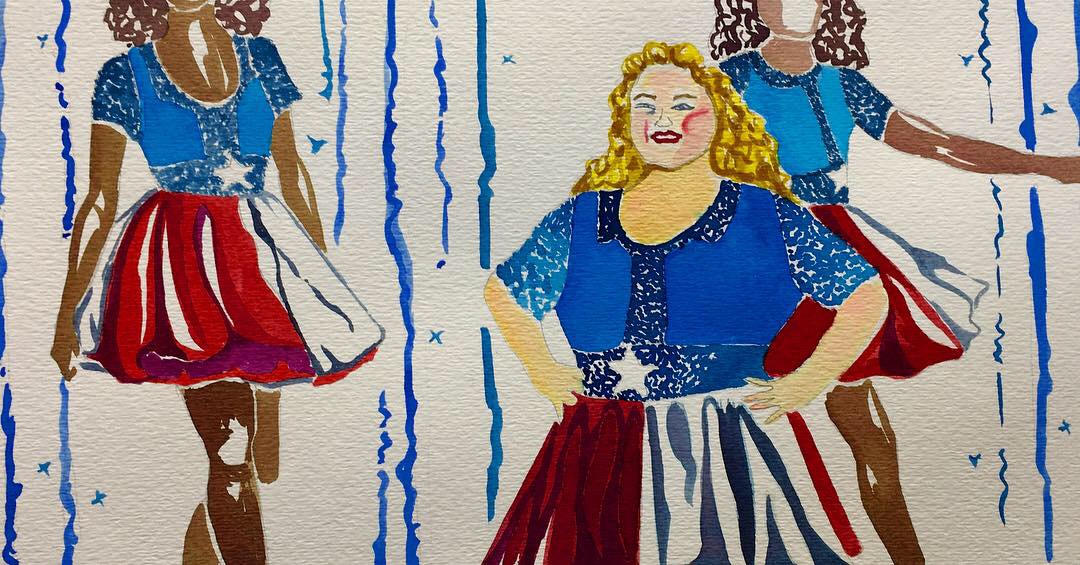 Willowdean, still from Dumplin’, Dr. Martin’s Dyes on paper, 2019.